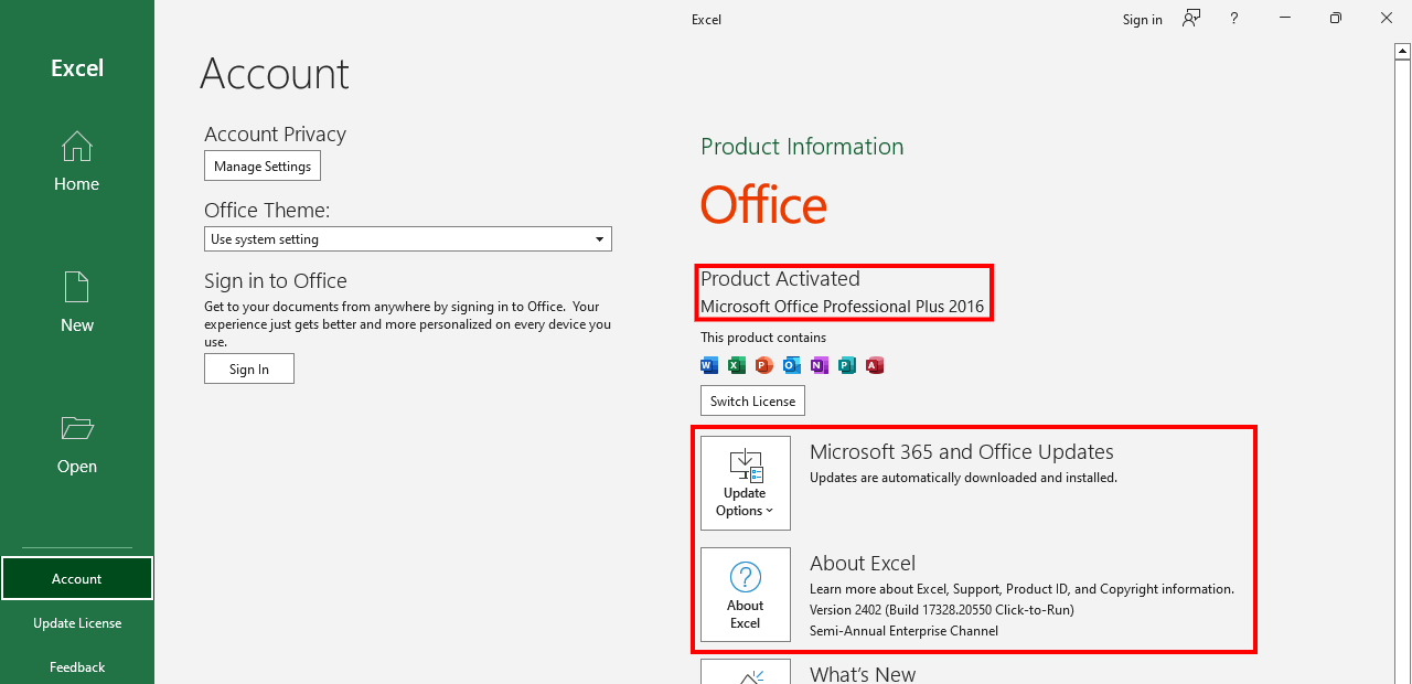 09. 再次打開Excel,會見到現在已以Office 2016作出啟動,但背後運行中,仍是Office 365版本。