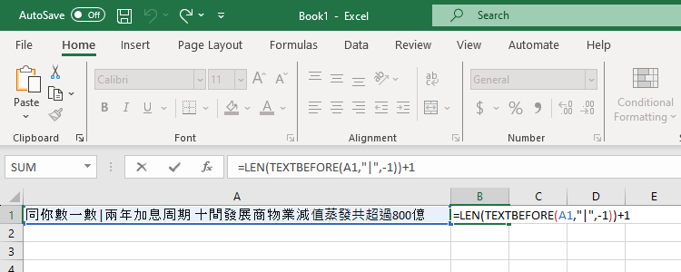10. 想知道現在究竟是Office 365定是Office 2016,可以在Excel中,執行一些只有Office 365擁有的公式,如『TextBefore』,如沒有出現錯誤,即是現時是使用的是Office 365程式。