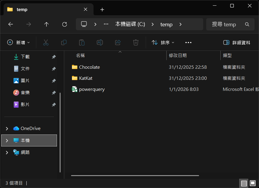08. 同時,建立2個資料夾(Chocolate及KatKat),放置各一個Excel檔案(workbook.xlsx),當作是模擬Access數據庫檔案情況。每個『workbook.xlsx』檔案,放置一堆數據,以便之後能檢查在Power Query更新後結果。