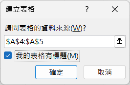 13. 建立一新表格,並勾選『我的表格有標題(My table has headers)』。