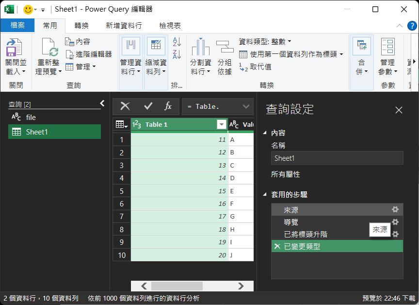 16. 之後會自動跳入『Power Query編輯器』,並將之前選取擇動態內容及其標題,加到Power Query裡面。