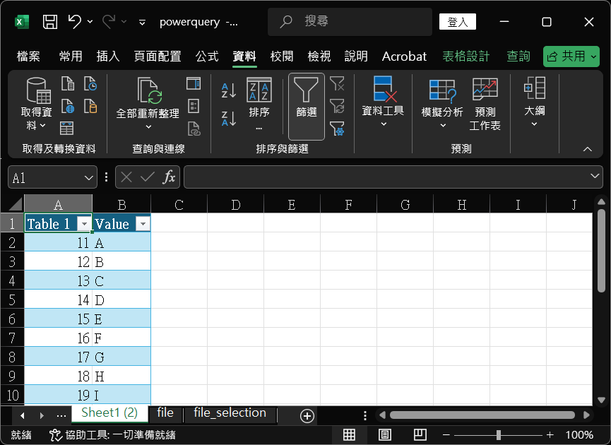 27. 返回『powerquery.xlsm』檔案,亦會見到『Sheet1』工作表內容作出同步更新。
