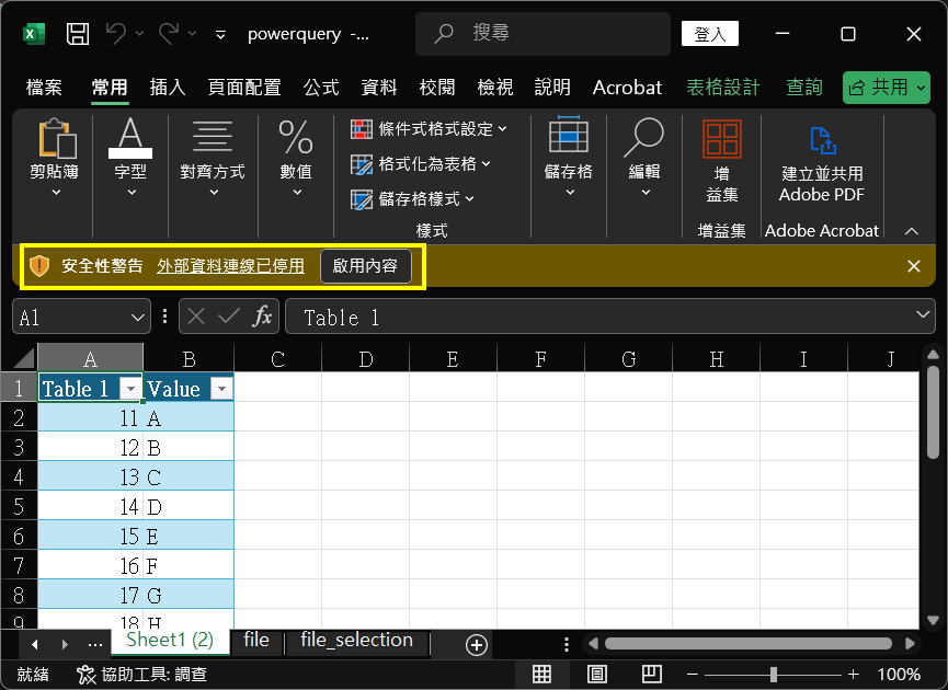 28. 下次打開『powerquery.xlsm』檔案時,先啟用內容/巨集。