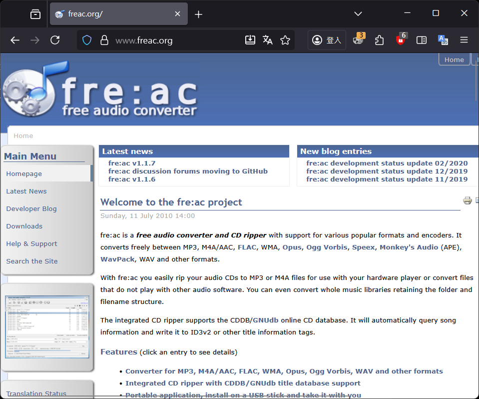 04. 另一個可以輸出FLAC檔案程式,可以用fre.ac。此程式不支援音源檔編輯但支援批次處理功能,我用此程式,主要針對將FLAC檔案轉為舊款Apple iPhone支援的Apple Lossless Audio Codec m4a音源檔。