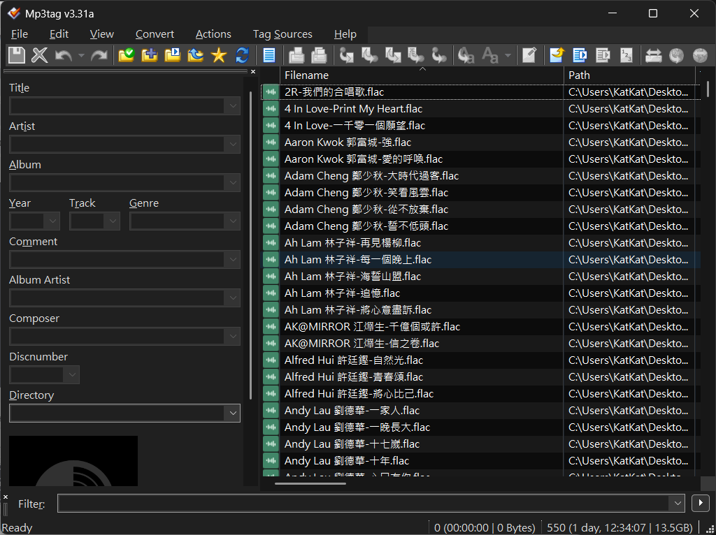 05. Audacity程式,可以在輸出FLAC檔案前,先設定好ID3 tags。不過要是幾百首歌,一首一首去做,就顯得需要大量時間。這時就可以用Mp3tag程式,批次更改某些ID3 tags內容,以減少改名時間。
